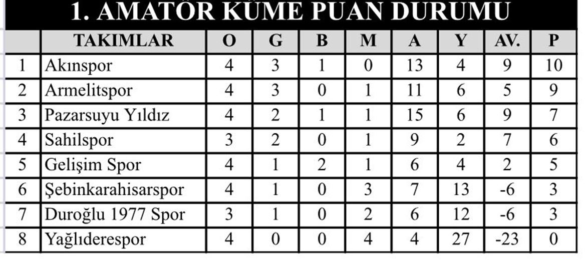 Mustafa Bülent Kılç ligi birinci amatör ligde 4.hafta maçları geçtiğimiz hafta oynanan maçların ardından tamamlandı.